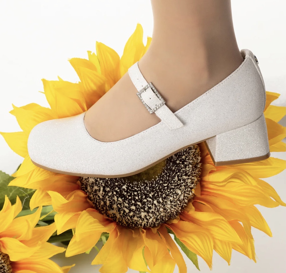 Nina Mila White Glitter Mary Jane Dress Shoe